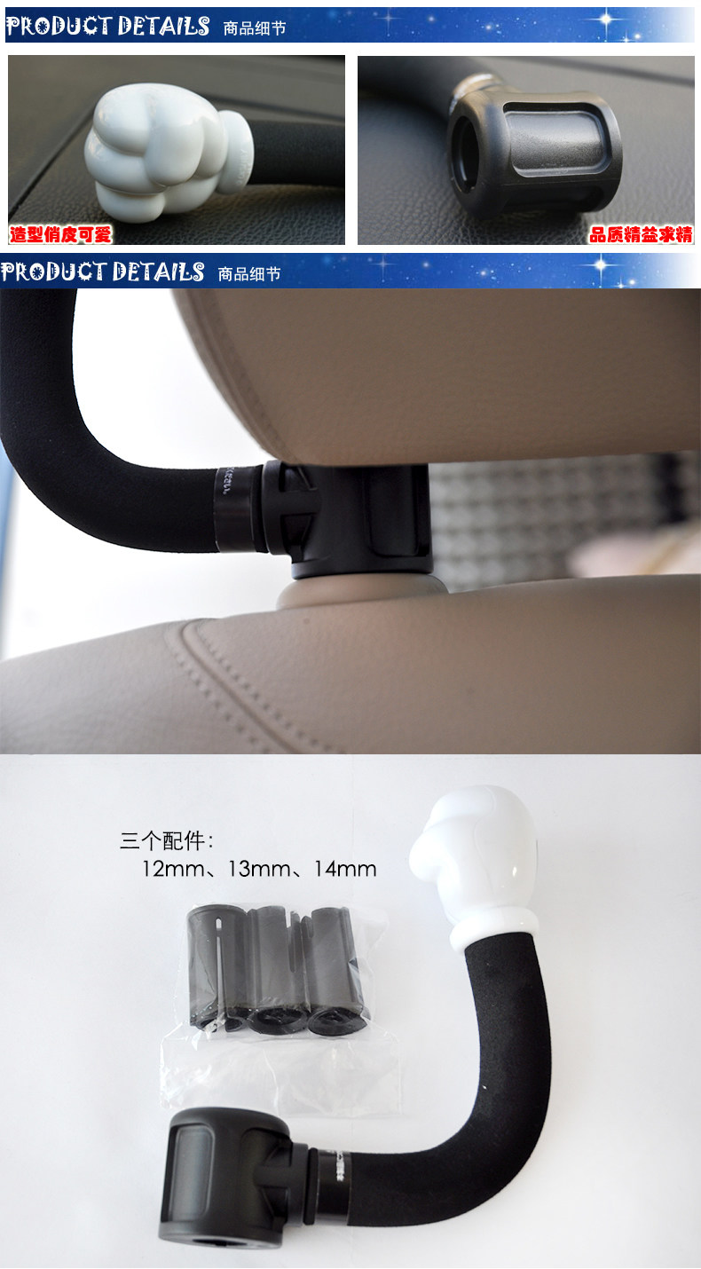 This product uses advanced plastic materials, simple and elegant design, does not occupy space. Multi-purpose hook mounted on the front seat cushion after; for umbrellas, trash bags hanging resistance weight 2Kg, versatile, strong affordability, convenient and practical.