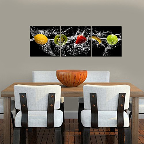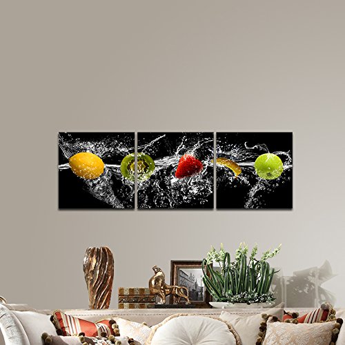 -. Binding : Kitchen -. Brand : Pyradecor -. Color : Black -. EAN : 0769700735536 -. Feature : High definition giclee modern sea beach canvas prints artwork is stretched and framed for home decorations wall decor. Each panel has a black hook already mounted on the wooden bar ready to hang out of box. / Decorative pictures photo printed on high quality canvas. A great gift idea for your relatives and friends. / Canvas prints set size:12x12inchx3pcs (30x30cmx3pcs). / Due to different brand of monitors, actual wall art colors may be slightly different from the product image. / Packed in carton box. A perfect choice for wall decorations home decor. -. IsAutographed : 0 -. Label : Pyradecor -. Manufacturer : Pyradecor -. Model : AH3024 -. MPN : AH3024 -. PartNumber : AH3024 -. ProductGroup : Home -. ProductTypeName : HOME -. Publisher : Pyradecor -. Size : 12x12inchx3pcs -. Studio : Pyradecor -. Title : Pyradecor Dancing Fruit Modern Landscape Artwork 3 Panels Giclee Canvas Prints on Stretched and Framed Canvas Wall Art Décor for Living Room Home Decorations -. UPC : 769700735536