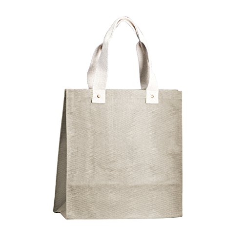 Jute Tote Bag With 18" Webbed Cotton Handles, 14 1/2" W x 15" L x 5" G, White