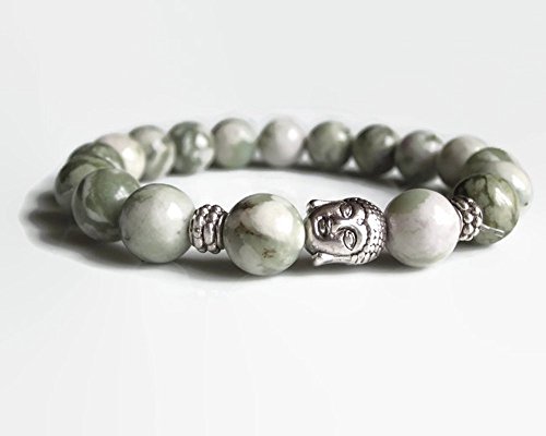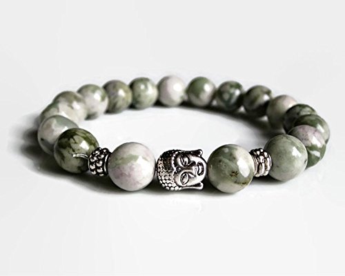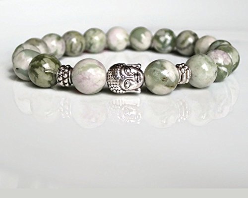 -. Title : Mens bracelet, mens beaded bracelet, Green lotus jasper bracelet