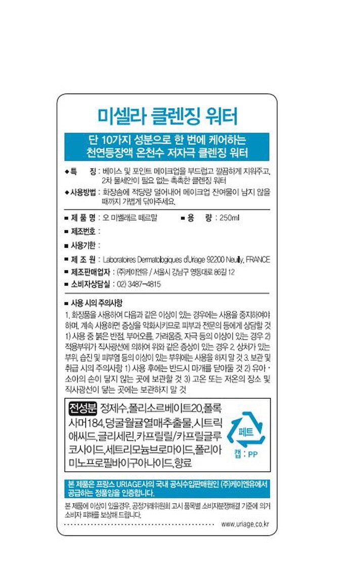 유리아쥬 미셀라 클렌징워터 250ml1+1기획