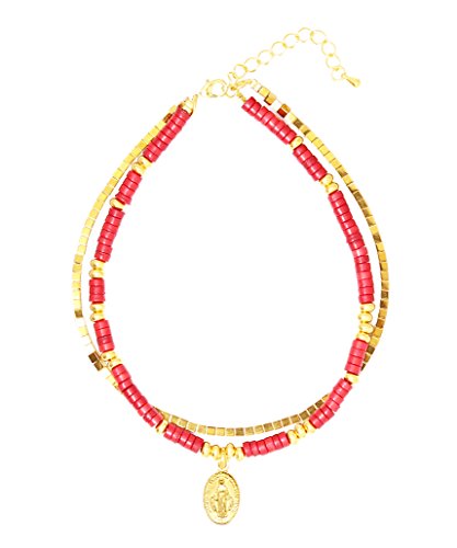 -. Feature : ブランド名:Strength / 鮮やかな色合いのストーンとゴールドカラーの2連のビーズにマリアのチャームがついたアンクレットです。Strengthジュエリーポーチのセットです。使わない時はポーチに収納しておくと便利です。 / キューブ状にカットされたゴールドビーズとマリアのチャームが夏の日ざしに当たるとキラキラと輝きます。 / アジャスターがついているので、約26cm~31cmのサイズ調節が可能です。カップルや大切なお友達などペアでもお使いいただけるデザインです。 / 【サイズ】約26cm (アジャスターにより最大約31cmまで調節可能です) マリアチャーム約1.3cm ビーズの太さ レッド約4mm ゴールド約2mm