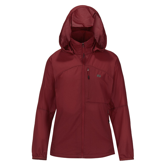 - 후드 부착형의 가벼운 경량 소재로 유용한 여성 자켓.