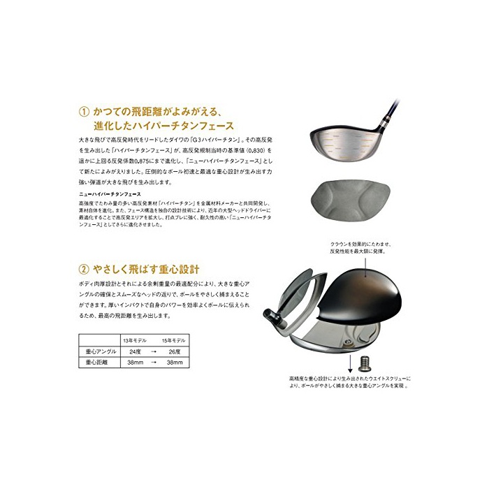 헤드 소재 제법:페이스/뉴 하이퍼 티타늄(티탄),바디/6-4Ti정밀 주조+6-4Ti,BT341Ti박 육단조