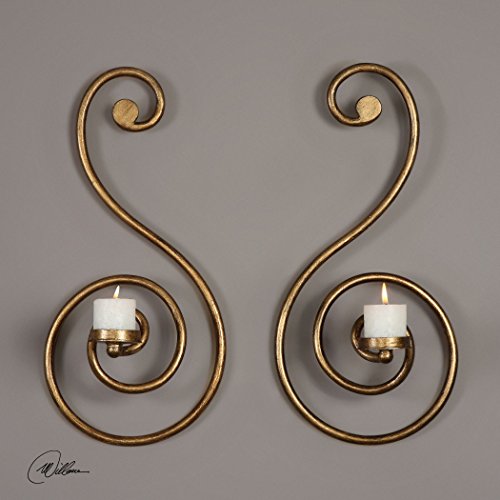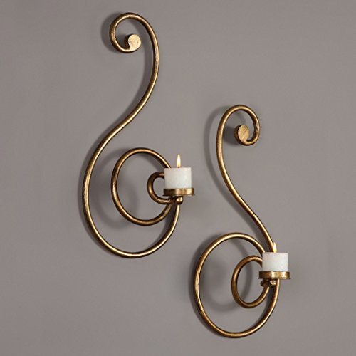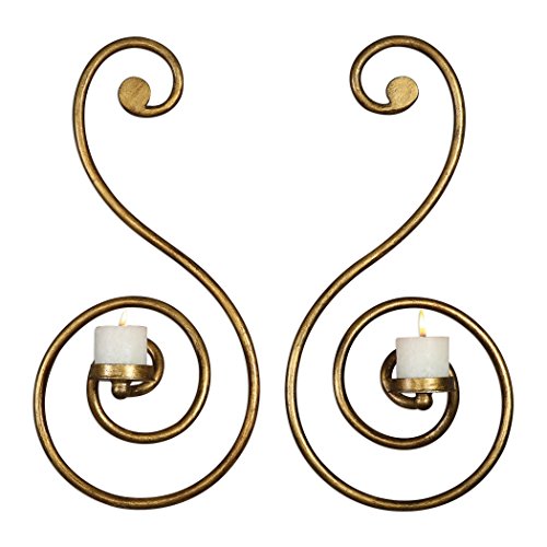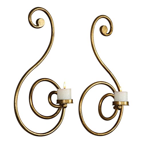 (My Swanky Home)/Furniture Decor/Home Decor/DIRECT FROM USA/Elegant Large Gold Swirl Wall Candle Sconces | Set 2 Pair Pillar Scroll