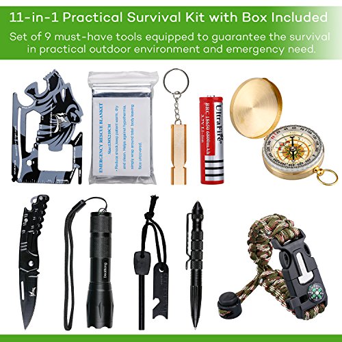 - The Most Reliable Partner: All these survival tools are specially designed for practical outdoor environment and emergency needs. The material is solid and durable enough to withstand the rugged environment. Reduce the fear and anxiety because of the lack of preparation and provide you with great peace-of-mind to help you survive in an emergency.