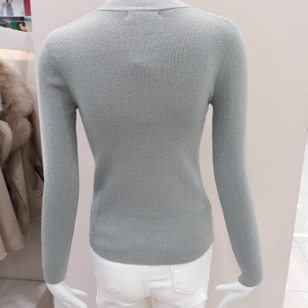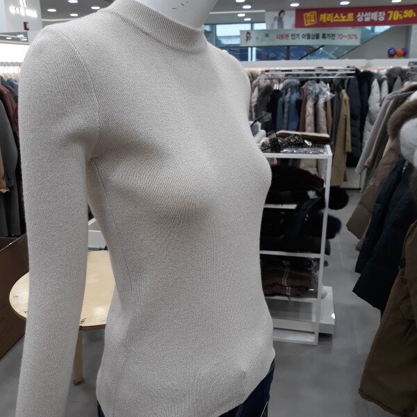 펄이 믹스되어 반짝이는 매력이 돋보이는 니트입니다 넓은 시보리로 늘어지지 않게 슬림핏 니트로 이너로 입기 좋습니다