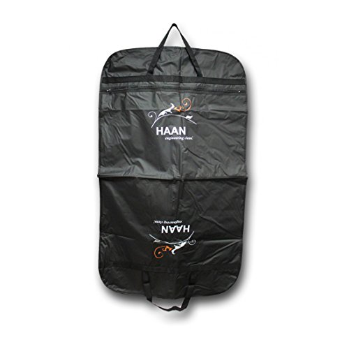 -. Binding : Home -. Brand : Haan -. Color : Black -. EAN : 0851904028481 -. Feature : Accommodates at least two hangers / Large exterior zip pocket / Easy fold-design keeps bag compact and clothes neat / Two handles for convenient transporting / Nylon material cleans with a wipe -. IsAutographed : 0 -. Label : HAAN -. Manufacturer : HAAN -. MPN : HGB1 -. PartNumber : HGB1 -. ProductGroup : Home -. ProductTypeName : HOME -. Publisher : HAAN -. Studio : HAAN -. Title : Travel Garment Bag Suit Carry-on -. UPC : 851904028481