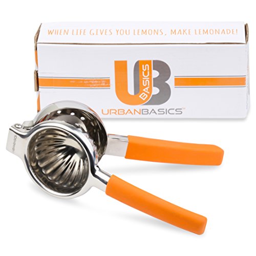 -. Title : #1 Lemon Squeezer - Premium Jumbo Size - Easy Extract - Heavy Duty Single Press Citrus Squeezer - In Bright Orange Silicone Handle - Made With Strong 18/10 Stainless Steel - By UrbanBasics™