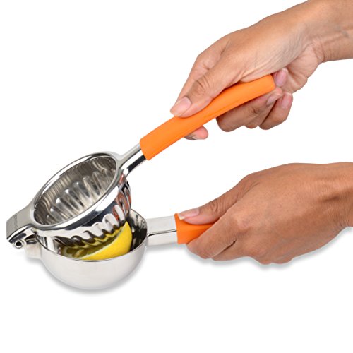 -. Feature : EXTRA BIG AND EXTRA WIDE - JUMBO SIZE: We have made this in JUMBO size with extra wide bowl to easily squeeze even more juice out of the lemons, limes and mandarins. Silicon handle covers in orange make it easy to find in the pile of kitchen utensils. / EXTENDED DURABILITY AND SUPER STRONG: Made from high grade 18/10 stainless steel to prevent against pitting and rusting and this also makes it super strong to last longer ensuring you are able to pass it on to the next generation. Since this is in big size, we had to add reinforced hinges and strong levers. This will not chip, rust, crack or bend like other cheap plastic or aluminum squeezers / EASY TO USE: The ideal bowl size and optimum length of the handles make it incredibly easy and comfortable to use. Perfect for squeezing fresh juice with no fear of getting any seeds or pulp into your creations. The unique design provides the perfect amount of leverage to completely extract every last drop of juice from your fruit. / EASY TO CLEAN: This Squeezer is dishwasher friendly. We recommend hand wash. You can just rinse it under water or put it in dishwasher. Unlike bulky electric juicers, this one is very easy to store. / RISK FREE, LIFETIME WARRANTY: Urban Basics strives for high quality, durable products that will last for a lifetime. With total commitment to customer satisfaction, we provide lifetime warranty with your money back or hassle free lifetime replacement guaranteed!