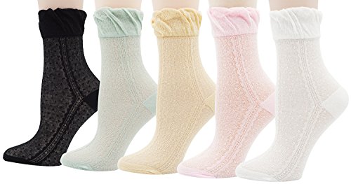 -. Title : Lovful 5 Pack Lace Ruffle Frilly Floral Elastic Socks Womens SP.R.Ing Colorful Breathable Casual Socks