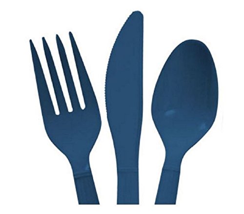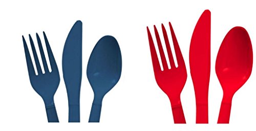 Red & Dark Blue Heavy Duty Plastic Cutlery Sets - 16 Spoons, 16 Forks, 16 Knives - 2 packs of 48 each 96 pcs total - New England Patriots