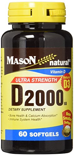 Ultra Strength D3 2000 IU is a dietary supplement that Enhances Calcium Absorption, Promotes Bone Health, Immune System, Breast Health, Colon Health and Prostate Health. Legal Disclaimer: These statements have not been evaluated by the Food and Drug Administration. This product is not intended to diagnose,treat,cure or prevent ant disease. This product has been manufactured and packaged in strict conformance with industry & government standards. Mason Natural®is a registered trademark and does not refer to any product claim.Feature
