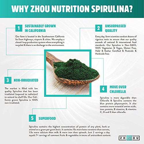 Non-GMO Spirulina Powder - Sustainably Grown in California - Highest Quality Spirulina on Earth - 100% Vegetarian, Gluten Free & Non-Irradiated -...