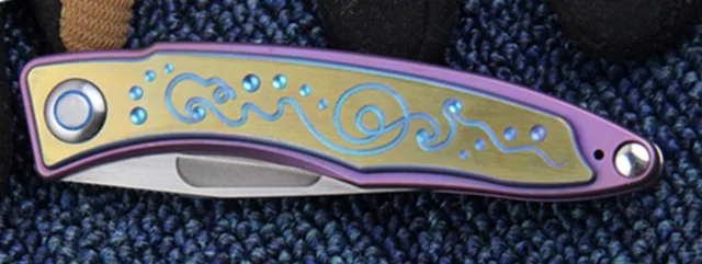 상품 내용 총 길이: 16.0 센치메터 블레이드 길이: 6.7 센치메터 핸들 길이: 9.2 센치메터 블레이드 폭: 1.8 센치메터 블레이드 두께: 2.4 미리메터 블레이드 재질: 100% 오스트리아 분말 스틸 M390 (미세 모래 처리) 칼 무게: 58 그램 무게: 88 그램 (포장) 경도: 58-60 HRC 표면: 수동 프로스트 핸들: 양극과 티타늄 핸들, 세이코 양극 상감 골드 패턴 칼 홀더: 슈퍼 탄성 티타늄 칼 클립 나사: 모든 나사 420 스테인레스 스틸 경도 HRC45, 모든 CNC 조각 가공 구조: 세라믹 위치 비즈, 정밀 440 스테인레스 스틸 소매 디자인, 효과적으로 증가 개폐 부드러움을. 다른: 블랙 선물 상자 + 순수 가죽