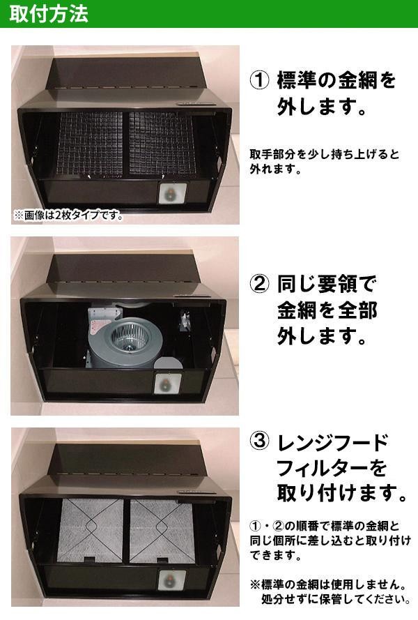 レンジフードの汚れをシャットアウト☆取付・交換がワンタッチで行える、不織布フィルターです。レンジフードのファンやモーターを汚しにくくしますので面倒な掃除の手間が簡易になります。 |