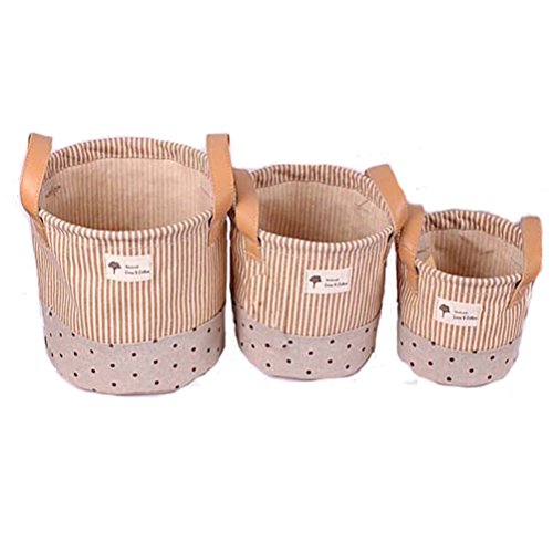 -. Feature : 1.Product's dimensions S: 12x12x10.5cm M: 16x16x13cm L: 17x17x16.5cm / 2.Space saving foldable design, Practical solution to neatly store away your laundry. / 3.Cotton and linen material, storage all kinds of desktop small items, with simple and fashion breath, let your home full of natural beauty. / 4.Ideal for storing washing laundry, dirty garments, kids' toy, household stuffs, suitable apply to kids' bedroom, garden, office,nursing room,kitchen etc / 5.Set of 3 storage bin provides attractive, lightweight solution to many storage needs, Toy Storage, Baby Product's Storage, Pet Product's Storage or just to store your magazines and newspapers.