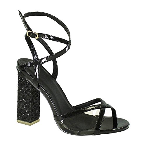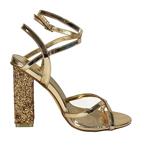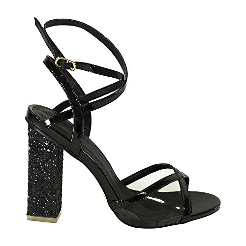 Binding : Apparel Product Description Dazzle all of those around you in this chic strappy sandal glitter heel! This sandal heel features a unique tall glitter heel which is perfect for all of your special occasions. With sturdy straps, you'll be able to move around all day in comfort and style. Available in black and rose gold. 0