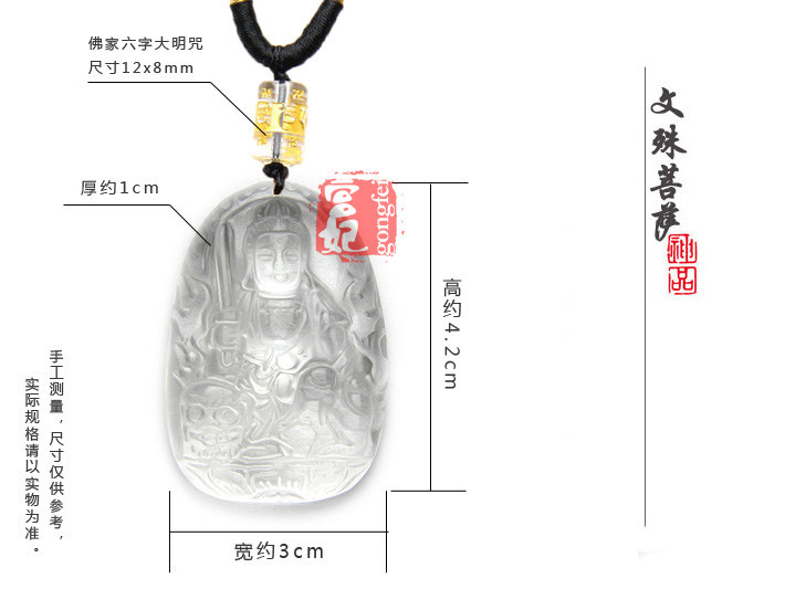 八大守护神 属兔文殊菩萨 白水晶吊坠 本命佛