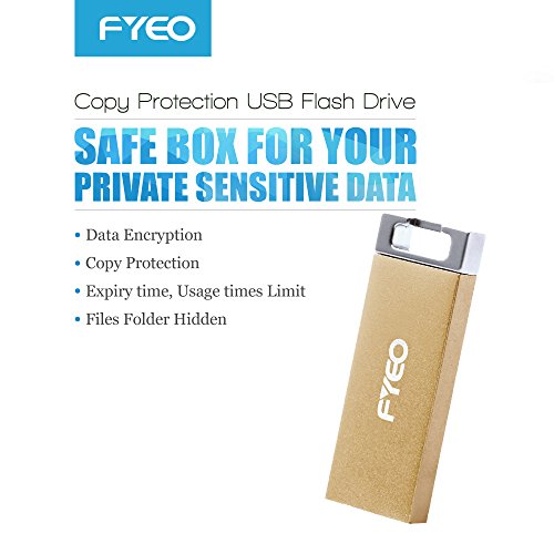 FYEO 64GB USB Flash Drives, Copy Protection Encryption Security Partition Edition, USB 2.0 Mini-sized Waterproof Metal Flash Drive Anti-copy For Designers, trainers (Golden)