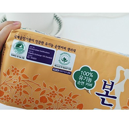 (Korean Bon Organic)/Health Care/Women's Health/DIRECT FROM USA/Korean Bon Organic Cotton Sanitary Pads with Wings Small 28 Count