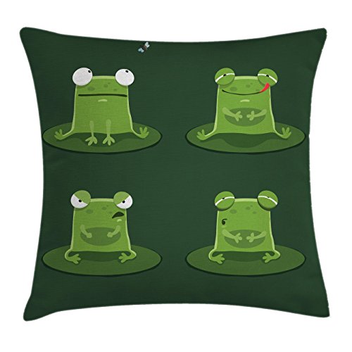 (Ambesonne)/Bedding Bath/Bedding/DIRECT FROM USA/Funny Throw Pillow Cushion Cover by Ambesonne, Funny Muzzy Frog on Lily Pad in Pond Hunting Tas...