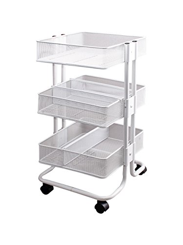 Storage Studios Mobile Craft Cart with Dividers has plenty of room for all of your craft essentials. Made of heavy duty metal, this cart features 3 open baskets and 3 removable dividers. The middle basket is adjustable in height to help accommodate larger items. With 4 casters (2 locking), this cart can be moved easily from room to room and is ideal for small spaces. Assembled dimensions: 27.5 H x 15.1 W x 13.9 D inches. Assembly required. Storage Studios has simple solutions to organize your life!.Feature