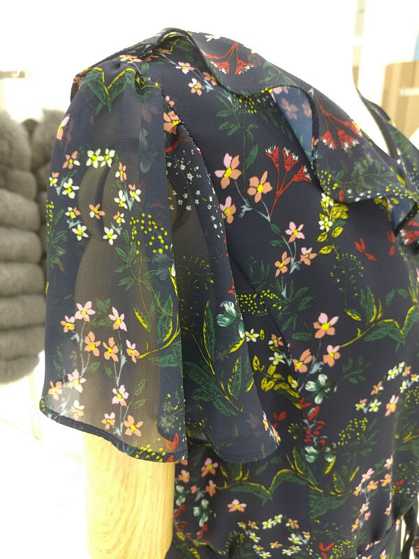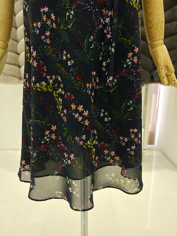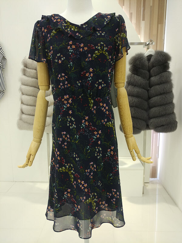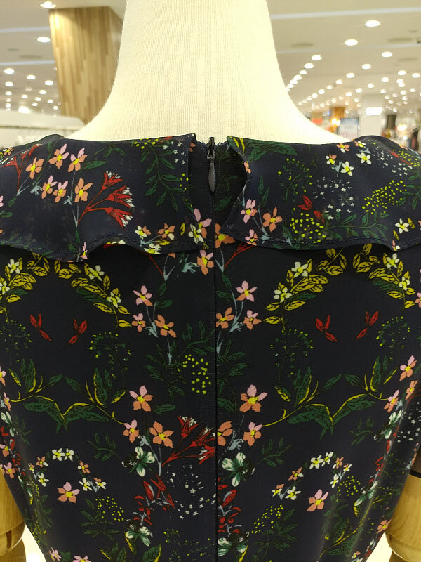 시원함을 더해주는 네이비바탕에 화사한 플라워가 우아함을 더해주며 지적인 아름다움을 보여주는 원피스입니다