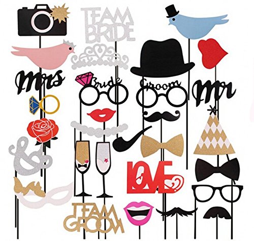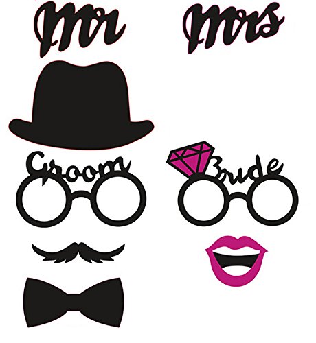 - ✅ BIG VARIETY. There is large variety of hats, moustaches, rings, Mr., Mrs., mouth, lips, lovebird, crown, necklace and glasses to choose from.