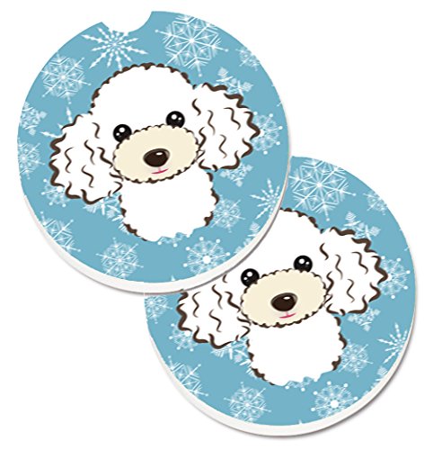 Caroline's Treasures Snowflake White Poodle Set of 2 Cup Holder Car Coasters BB1691CARC, 2.56, Multicolor