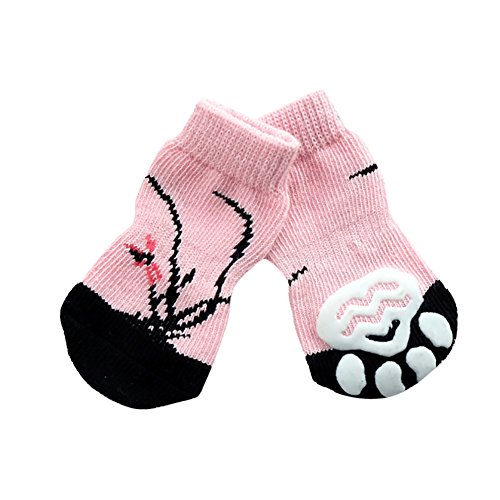 -. Title : EFINNY Puppy Pets Dog Supplies Floral Patterns Non-Slip Socks 4pcs/set