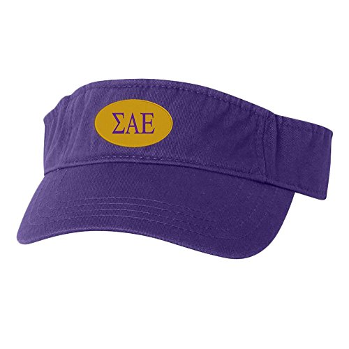 Binding : Apparel Product Description Sigma Alpha Epsilon Greek Oval Heavy Visor Our quality visors feature a two-tone embroidered oval design on the front in your choice of colors, an adjustable fabric Velcro strap on the back and a super soft, flexible body for superior comfort. 0