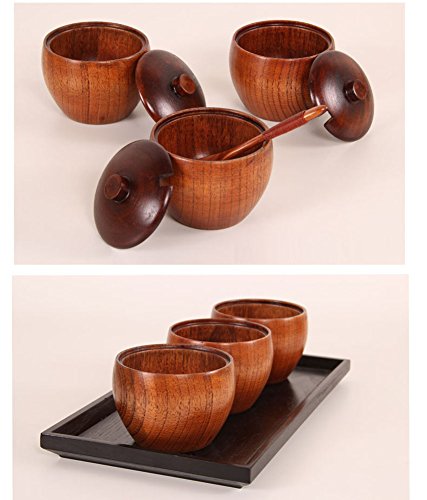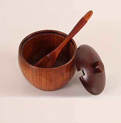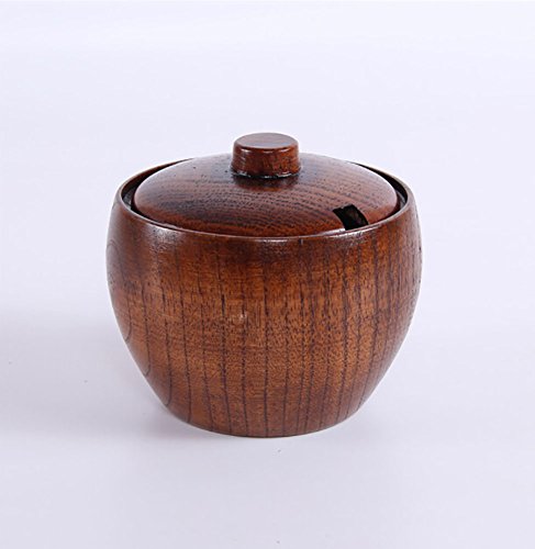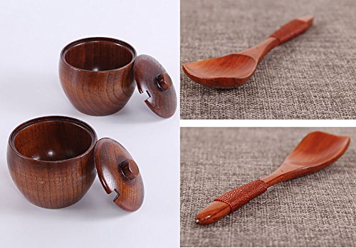 POINTS 2 pieces set: Wood Spice Jar and Spoon. Size: Wooden Jar(6.5*6.5cm), small Spoon(8*3.5cm). Made of Jujube wood, clear wood grain, handmade object. Easy to clean, you could wipe them with water and keep them clean. Suitable for kitchen or coffee shop. Practical kitchen tool to contain seasoning, sugar, coffee, etc. NOTE As they're handmade, each one varies slightly. Don't put it in the damp for a long time. Hand wash with warm water, don't soak it.