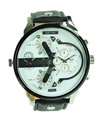 -. Title : NY London Men's Dual Time White Black Face Black PU Leather Strap Watch Analog Quartz