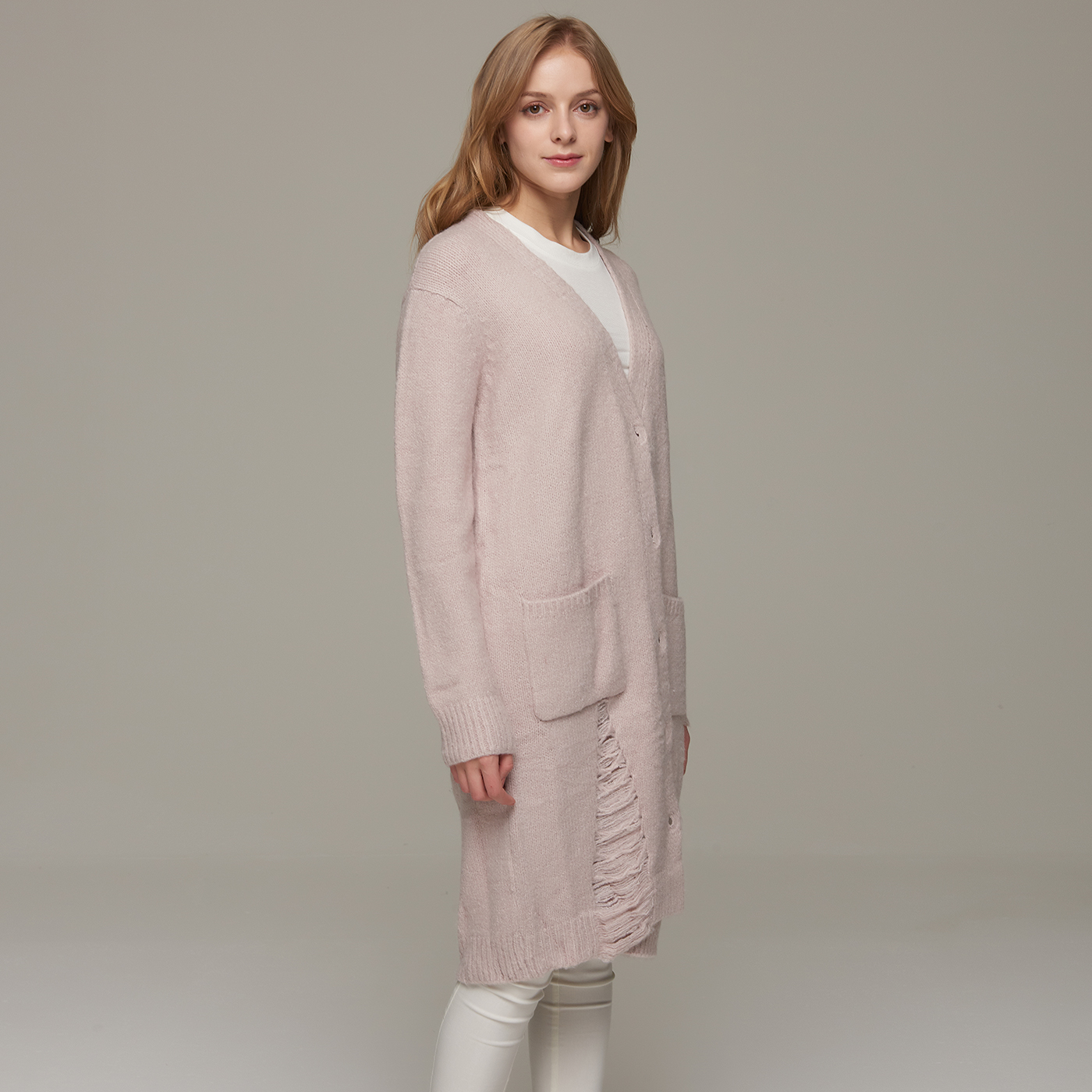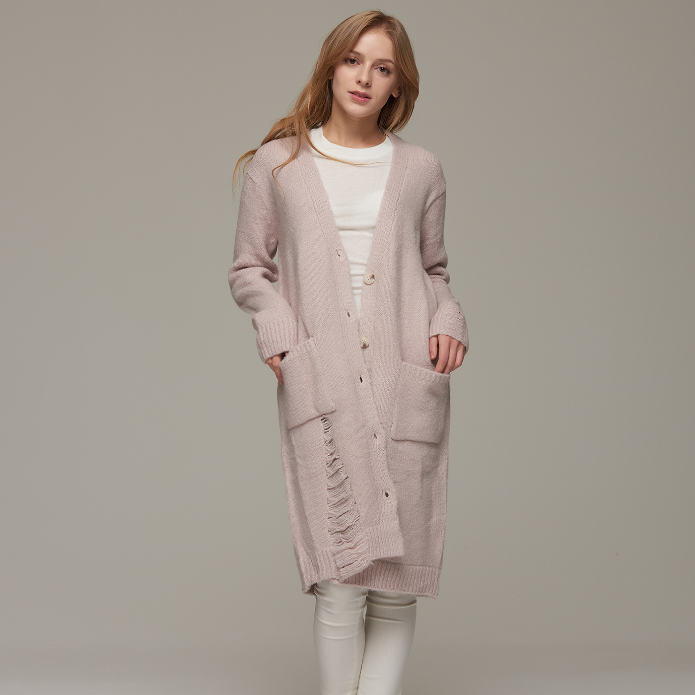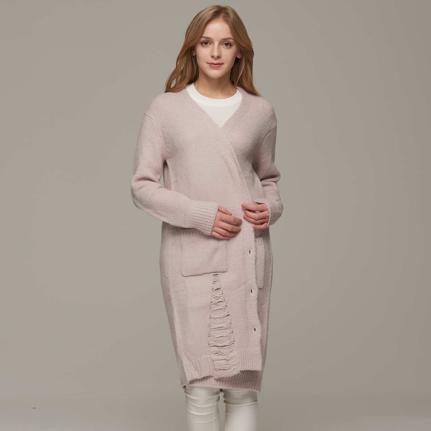 퀄리티 좋은 디스트로이드 롱기장 니트 가디건입니다.