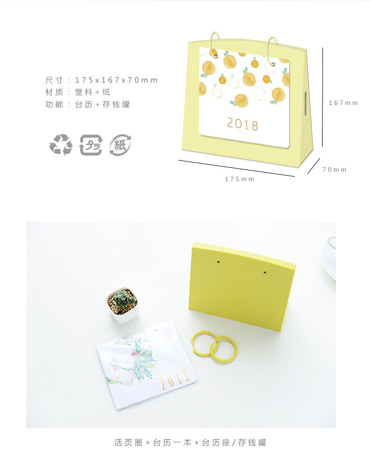 2018年小台历计划本多功能记事本办公室桌面可爱翻页日历摆件