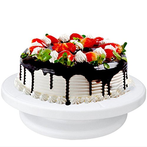11” Cake decorating Rotating Turntable with Icing Spatula Angled 12.7'' and Smoother, Revolving Cake Stand White Banking Cake Decorating Supplies (11" WT)