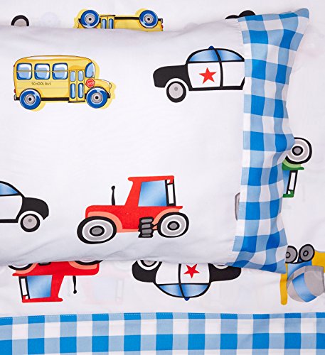 Chezmoi Collection 3-Piece Truck Tractor School Bus Police Car Microfiber Sheet Set, Twin