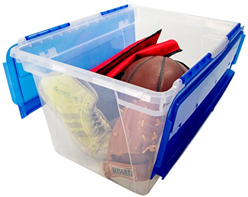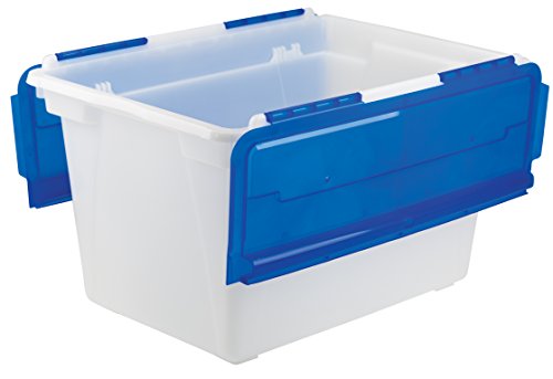Storex Flip-Top Storage Tub, 22.5 x 15.25 x 13 Inches, Frost/Blue, Case of 4 (00912U04C)