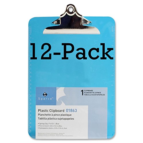 Value Pack of 12 - Sparco Plastic Clipboards-Transparent Plastic Clipboard, 9x12-1/2, Blue