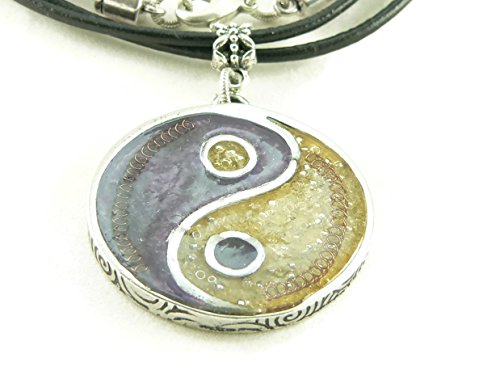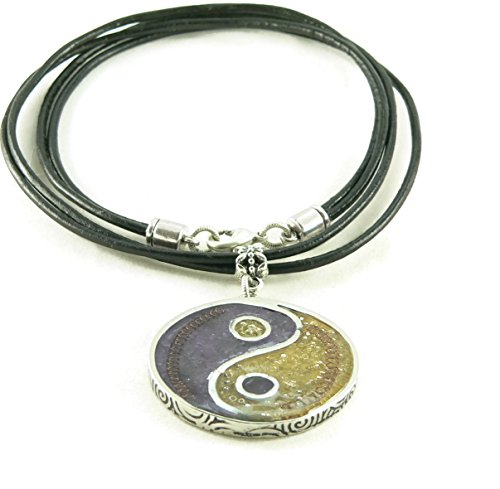 -. Title : Orgone Energy Large Yin Yang Pendant Necklace in Amethyst and Citrine with Leather Cord