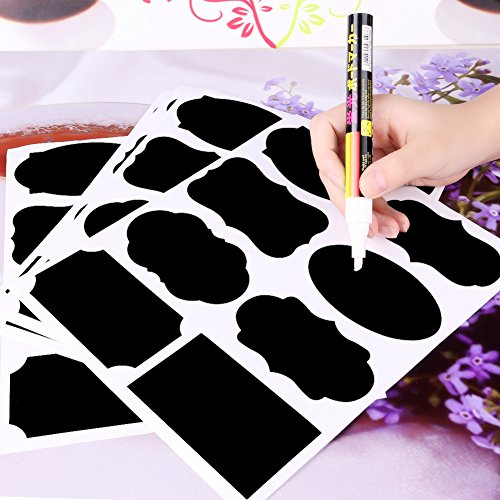 40 Chalkboard Labels with Free Liquid Chalk Marker-for Your Home Office Kitchen Stickers Dishwasher Freezer Safe Kids Rewritable