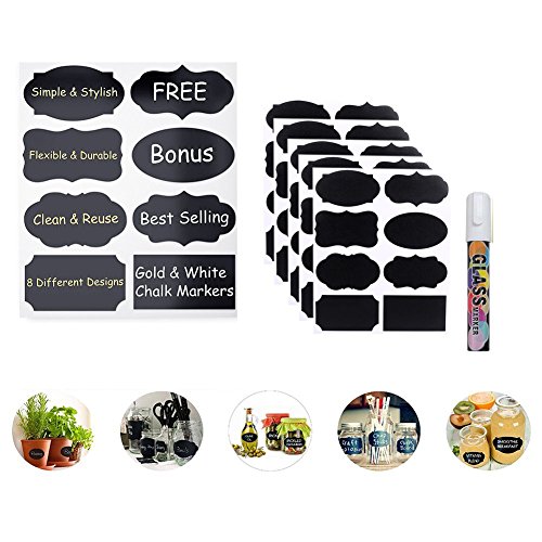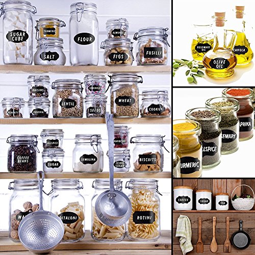 - ★DURABLE AND EASILY REMOVABLE - Write on labels with chalk or chalk ink pen. Wipe clean with a damp cloth or eraser to change what you have written. The labels themselves are waterproof, so they won't wash off, even in the dishwasher.