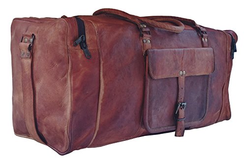 -. Feature : Imported / 100% leather New genuine leather Duffel bag / Travel Bag handcrafted with vintage style / Dimensions: 24 inches (length), 11 inches (height), 11 inches (depth) / Strong & durable brass fittings & buckles, quality zippers, heavy duty lining / Adjustable shoulder Strap, Big main compartments for clothing /travel and sports gear etc, Two Side pockets for accessories etc. Front pocket for cash /mobile