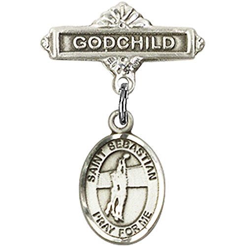 -. Title : Sterling Silver Baby Badge with St. Sebastian / Volleyball Charm and Godchild Badge Pin 1 X 5/8 inches
