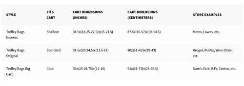 DESIGNED TO FIT: Trolley Bags were designed with the American grocery shopper in mind. The Vibe Original are the vibrant color option that fit the standard American Grocery cart found at stores such as Kroger, Walmart, Albertsons, Winn-Dixie, etc…
