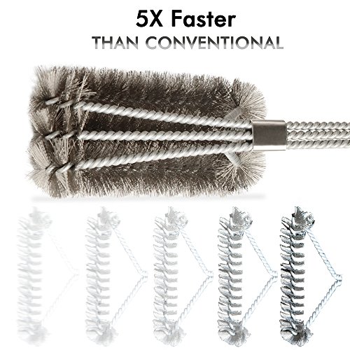 Fortless Cleaning: 3 in 1 barbecue brush, has equivalent stroke. can fit and wrap around the grate to clean debris which another brushes could never reach.