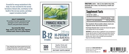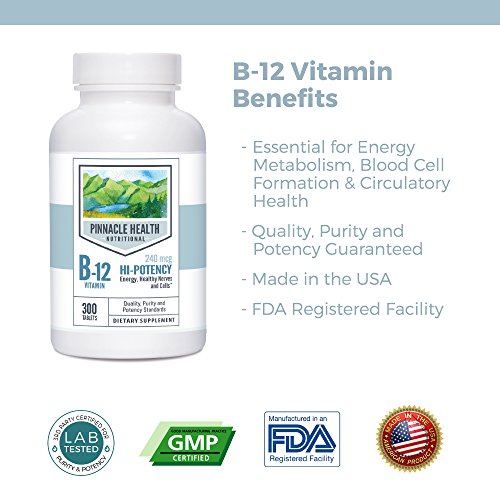 SUPPORTS A HEALTHY NERVOUS SYSTEM- Pinnacle Health's Hi-Potency B-12 tabs are essential for the normal formation of blood cells, and contributes to the health of the nervous system, and helps support circulatory health