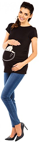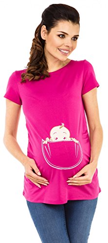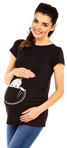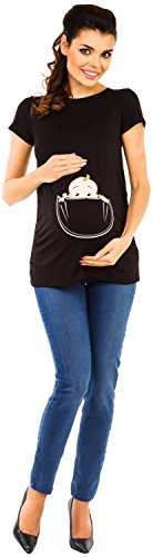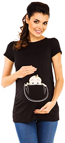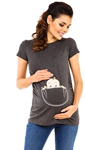 Cute maternity top / t-shirt with short sleeves and funny Baby in Pocket print. A chic design that flatters at any stage of pregnancy. Excellent stretch fabric makes this top perfect during pregnancy and allows comfortable fit
