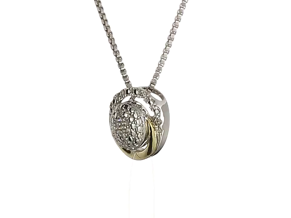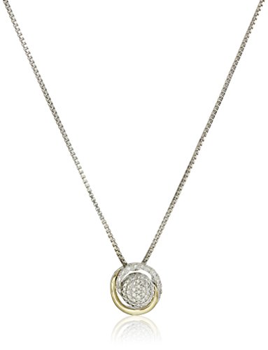 S&G Sterling Silver and 14k Yellow Gold Diamond Circle Framed Pendant Necklace, 18"